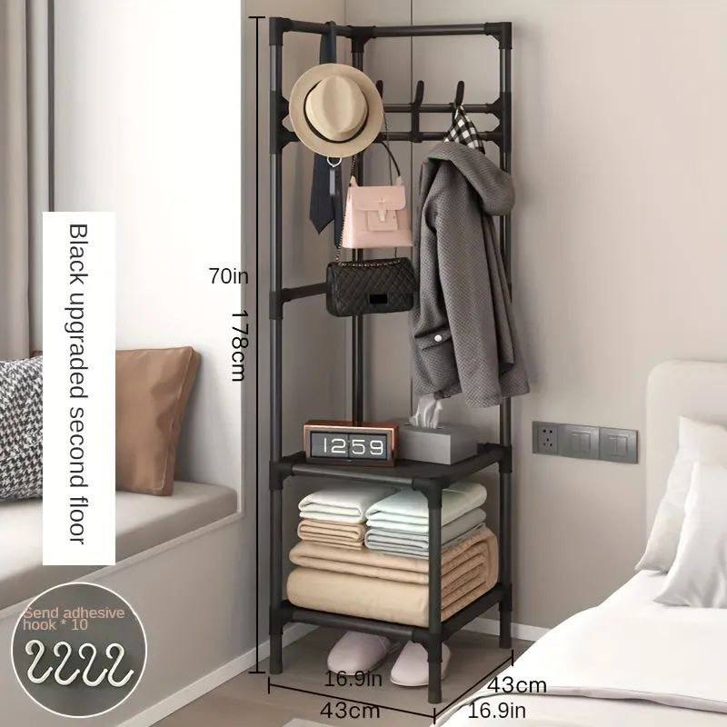 ركن معطف متعدد الرفوف و الوظائف مع شماعات ملابس